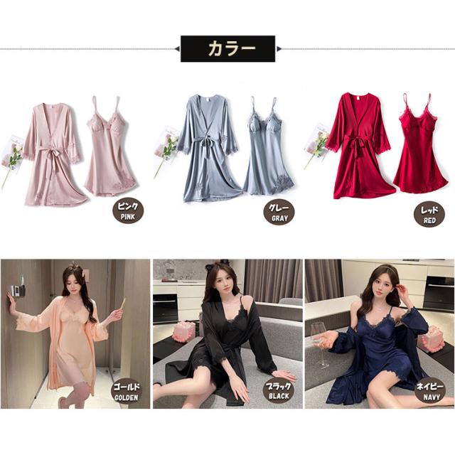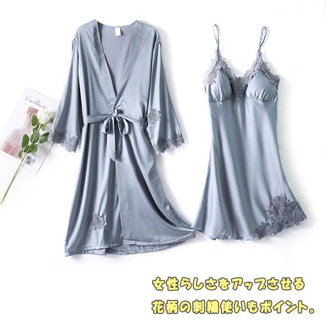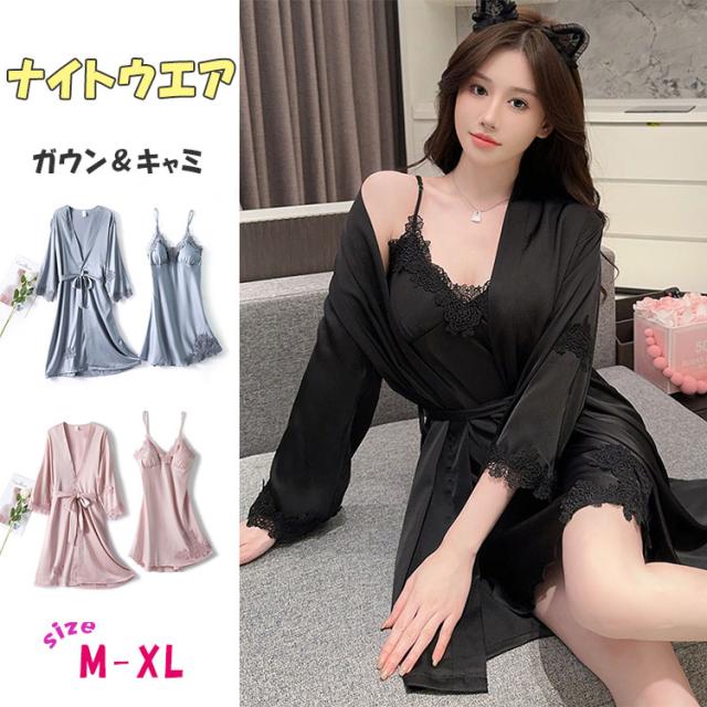ナイトウエア 《 ガウン キャミソール 》 2点セット セクシー ガウン&キャミ ランジェリー 夏 涼しい レディース ルームウェア リラックス 可愛い パジャマ エレガント かわいい おしゃれ 大人女子 キャミワンピース 部屋着 旅行 お泊り