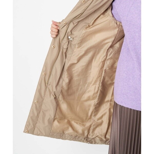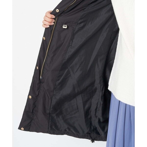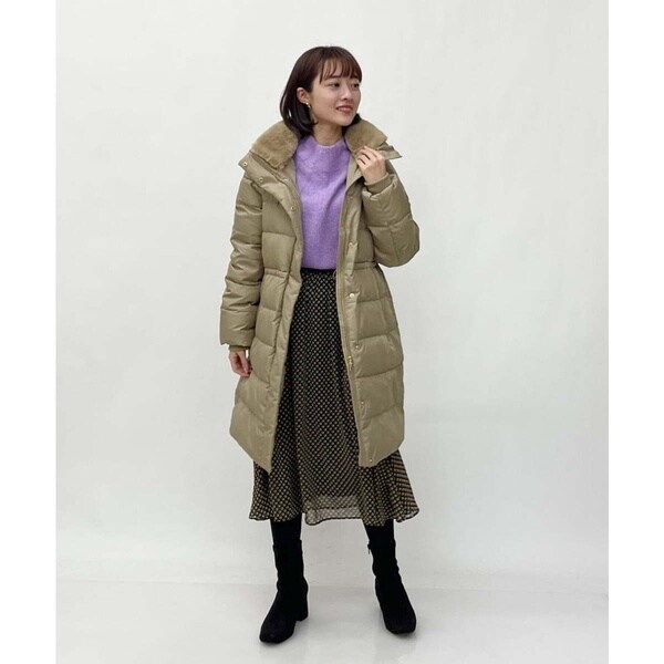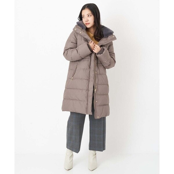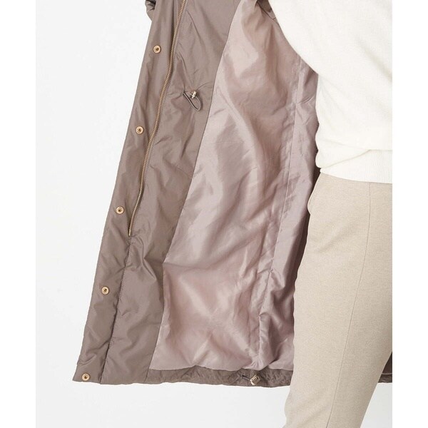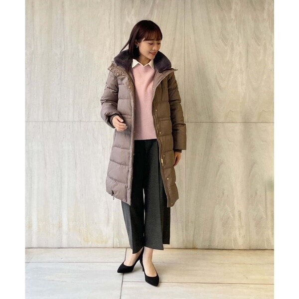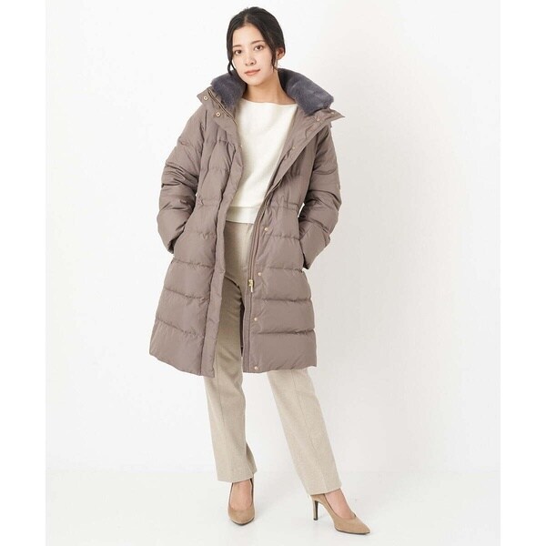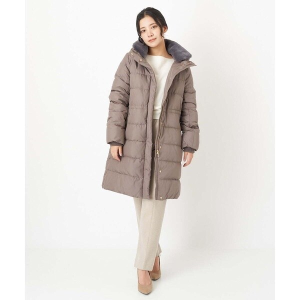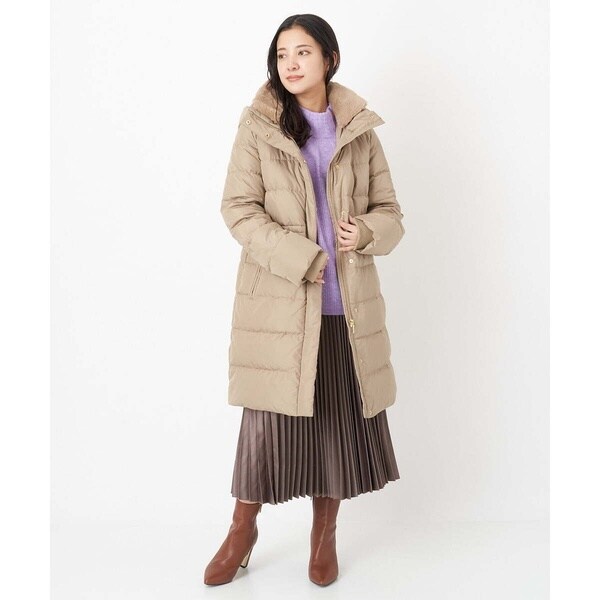 スタイリングを問わないベーシックなダウンコート。すっきりと着こなしていただけます。首周りはエコファーでボリュームを持たせ、上品で華やかな印象に。ウエスト内側がドロスト仕様になっているのでシルエットの変化も楽しめます。ポケットの袋布は起毛素材を使用し、暖かさの増す嬉しい仕様に。