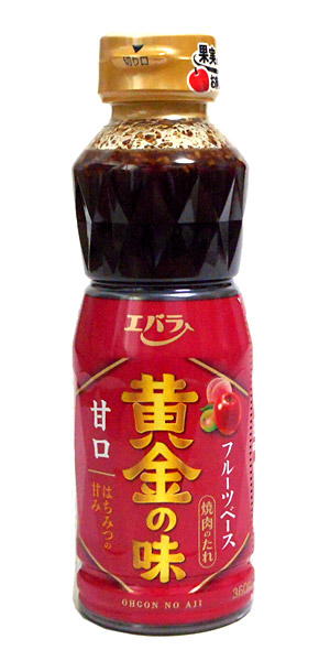 「黄金の味」は、厳選されたりんご、もも、うめなどを秘伝の黄金比率でブレンドした、果実たっぷりでコクのある焼肉のたれです。