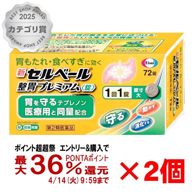 【超超祭 最大36%還元】【第2類医薬品】[セット]新セルベール整胃プレミアム錠 72錠×2個(セルフメディケーション税制対象)[胃腸薬][送料無料] (6049072-set1)