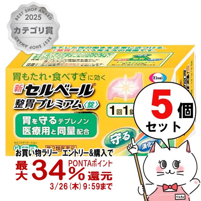 【お買い物ラリー ポイント34%還元】【第2類医薬品】【楽天ランキング1位】[セット]新セルベール整胃プレミアム錠 72錠×5個(セルフメディケーション税制対象)[胃腸薬][送料無料] (6049072-set3)