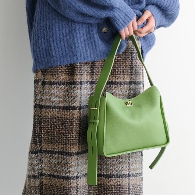 やわらかなフェイクレザーでこなれ感のあるショルダーバッグ。背面にはオープンポケット付きで、スマホもさっと収納できます。 ショルダーストラップは、金具を留めてお好きな長さで使えます。カジュアルから、フェミニンスタイルまで幅広く使えるアイテムです。