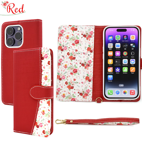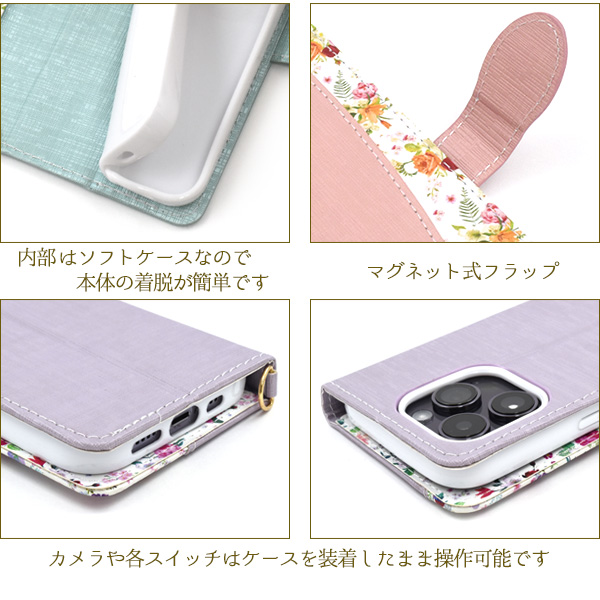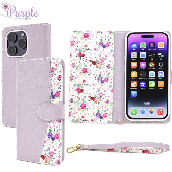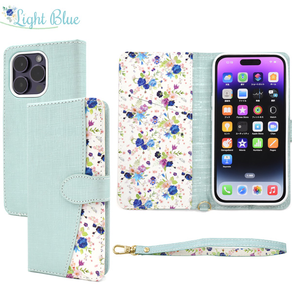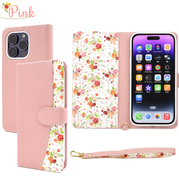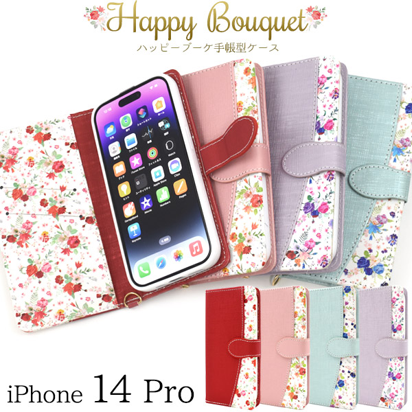 スマホケース iPhone14Pro 手帳型 花柄 ハッピーブーケ お花 花模様 携帯ケース かわいい フェミニン お洒落 ストラップ付き ケース 上品 華やか iPhoneケース エレガント 小花 フラワー おしゃれ スマホカバー 装着簡単 SoftBank au docomo オシャレ スマートフォンケース