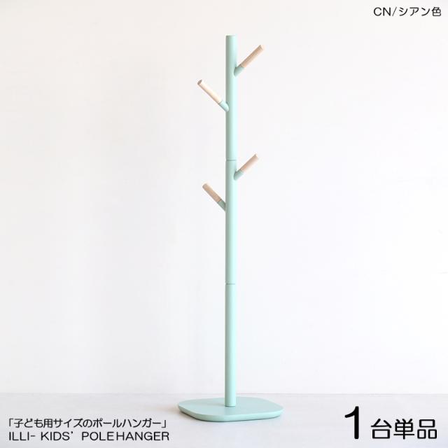 ILLI-PH キッズ ポール ハンガー【1台単品】シアン色 / 全5色 ペールブルー色 天然木 ラッカー塗装仕上げ スリムタイプ 組立商品 コートハンガー 幅30×奥行き30×高さ118.5cm