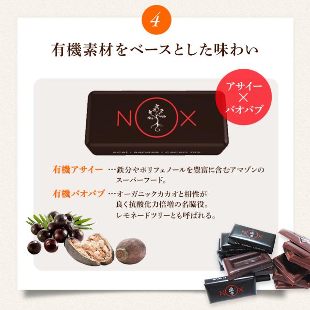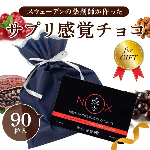 ギフトセット 送料無料 NOX プレミアム オーガニック チョコレート アサイー×バオバブ90粒 有機カカオ70% 低GI チョコ プレゼント ギフト 友チョコ バレンタイン ホワイトデー お返し