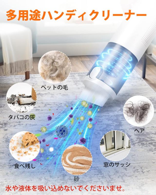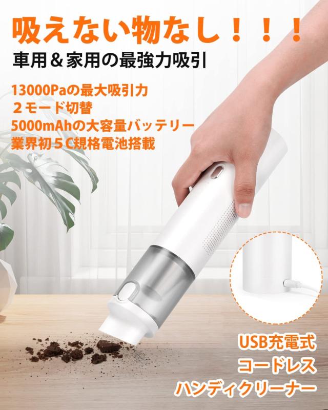 【コードレス&強力吸引】静電気の原因で、車シートにちっちゃいごみたくさん付いて、手紙で拭いても落ちません。ハンディクリーナー 軽量は使用場合問わずに掃除することできます、洗車家さんに行かなくても、車内掃除可能です。ハンディクリーナー コンパクトの最大13000Pa吸引力ので、どうなちっさいごみでも逃せない、ハンディクリーナー 充電式で掃除することは楽なことになります。