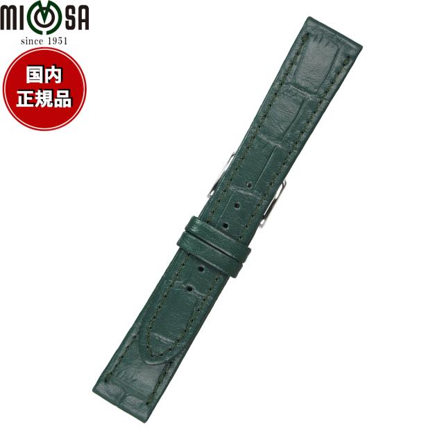 ミモザ MIMOSA 腕時計 替えバンド ベルト メンズ P型押ワニ カーフ 17mm グリーン/シルバー 時計 時計バンド 時計ベルト 革 牛革
