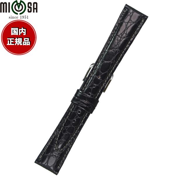ミモザ MIMOSA 腕時計 替えバンド ベルト メンズ RA型押ワニ カーフ 19mm ブラック/シルバー 時計 時計バンド 時計ベルト 革 牛革