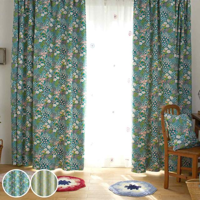 カーテン スミノエ オハナバタケ 100×135cm 遮光2級 ( ドレープカーテン ドレープ 遮光カーテン 既製 間仕切り 窓 目隠し 花柄 ウォッシャブル 洗える 形状記憶 日本製 アジャスターフック 天井付け タッセル 片開き 1枚 )