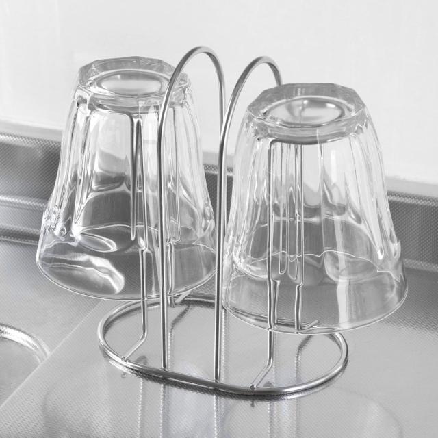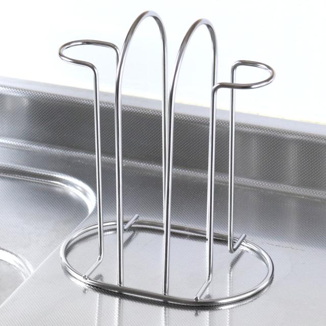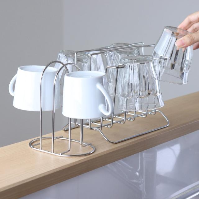 毎日使うグラスの水切りや収納に便利なミニコップスタンドです。空間を多くとらず、コンパクトに2個のグラスを収納できます。シンク周りや調理台・カウンター上だけでなく収納スタンドとしても使用でき、棚の中でごちゃつきやすいグラスもすっきり収納できます。耐久性に優れたステンレス製で変形しにくく、サビにくい特長もあるのでお手入れが簡単で長く愛用していただけます。