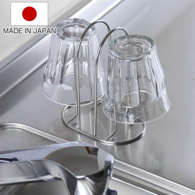 毎日使うグラスの水切りや収納に便利なミニコップスタンドです。空間を多くとらず、コンパクトに2個のグラスを収納できます。シンク周りや調理台・カウンター上だけでなく収納スタンドとしても使用でき、棚の中でごちゃつきやすいグラスもすっきり収納できます。耐久性に優れたステンレス製で変形しにくく、サビにくい特長もあるのでお手入れが簡単で長く愛用していただけます。