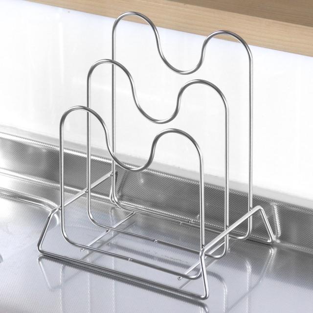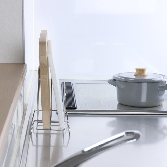 同シリーズにサイズや形状が異なる「ミニまな板立て」があります。ご自宅のキッチンや収納したいまな板のサイズに合わせてお選びいただけます。