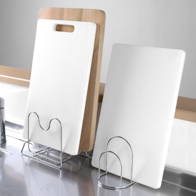 まな板を省スペースで収納できるまな板立てダブルです。あまりスペースを取らずにまな板を収納できるので、作業スペースが広く使えて料理がはかどります。耐久性に優れたステンレス製で変形しにくく、サビにくい特長もあるのでお手入れが簡単で長く愛用していただけます。