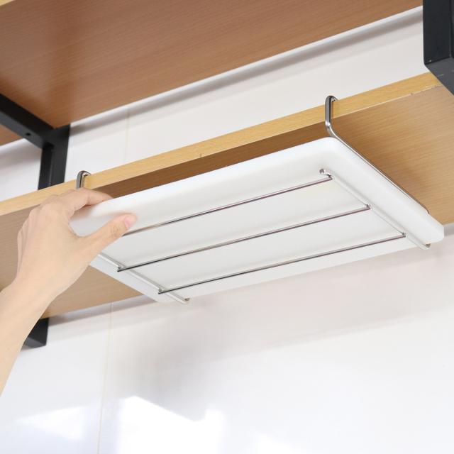 まな板は2枚収納することができ、厚みのあるまな板でもしっかり立て掛けて収納することができます。まな板は横置き、縦置きどちらでも可能です。