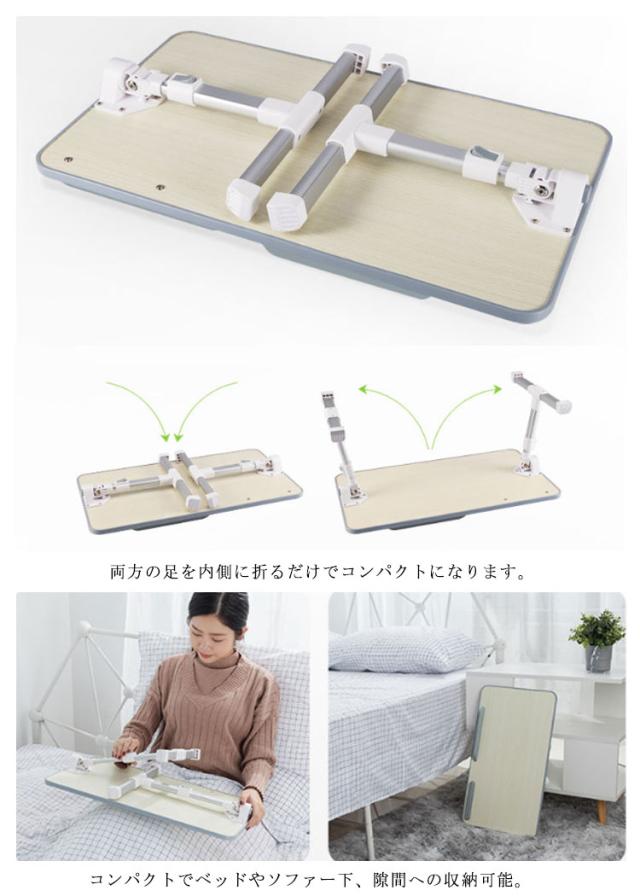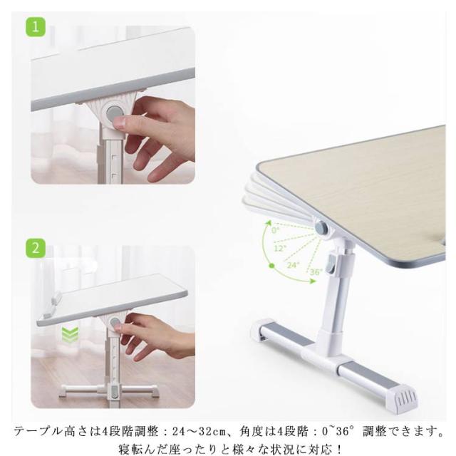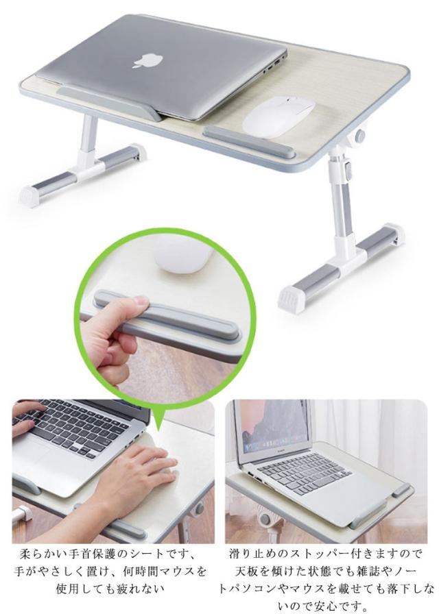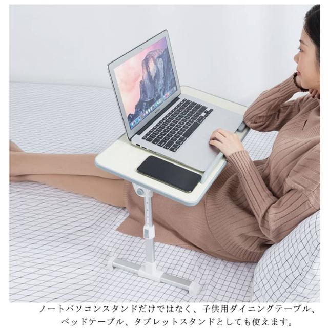 ベッドテーブル 折りたたみ式 ノートパソコンスタンド デスク テーブル 机上 ラック 卓上 パソコンデスク 高さ 角度調節可能 多機能 滑り止めのストッパー付き