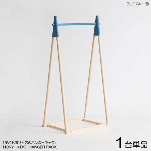 HONY-CH キッズ ハンガーラック【1台単品】ブルー色 / 全4色 天然木 スリムタイプ 組立商品 コートハンガー 北欧風 幅65×奥行き43.5×高さ120cm