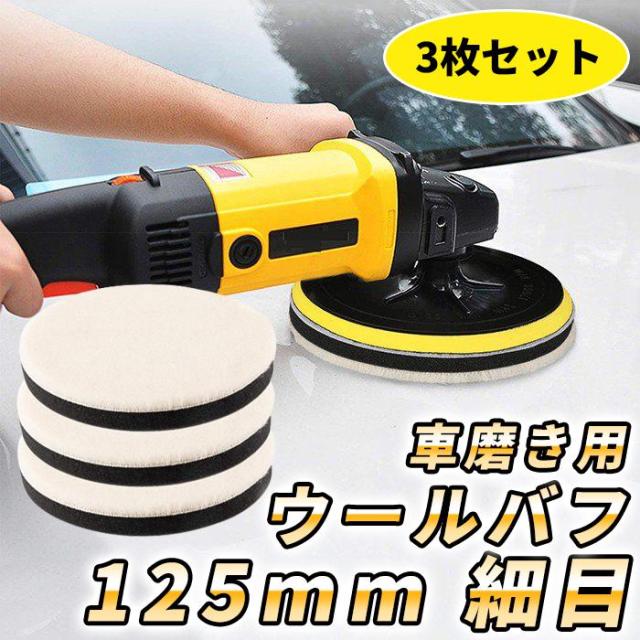 「クーポン配布中」3枚セット ポリッシャーバフ 車磨き用 ウールバフ 125mm 細目 電動ポリッシャー用 洗車用 車磨きスポンジ ポリッシャー用 研磨艶出し