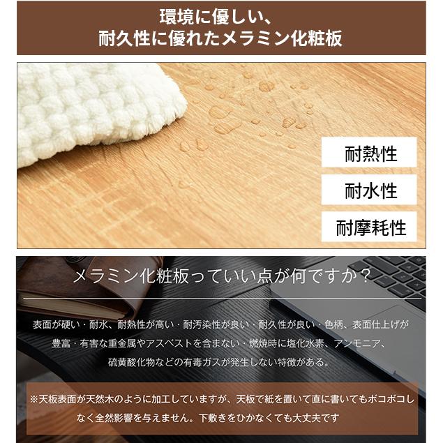 【木目の立体感までを再現した美しい木目模様天板】なめらかな手触り天板は高級感といい肌触りが兼ね備える上、水や汚れに強く、耐久性も優れて、お手入れも簡単です。汚れた時もサッと簡単に拭けます。