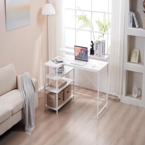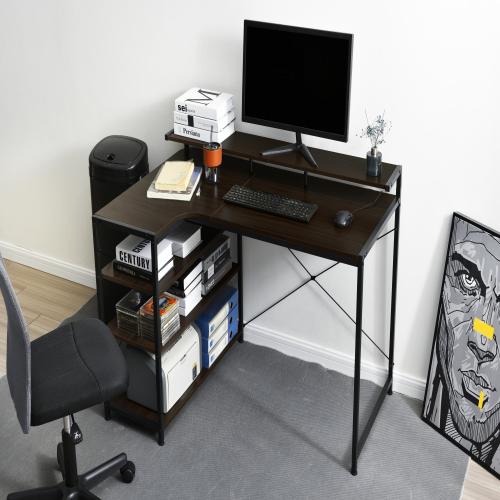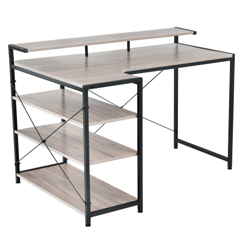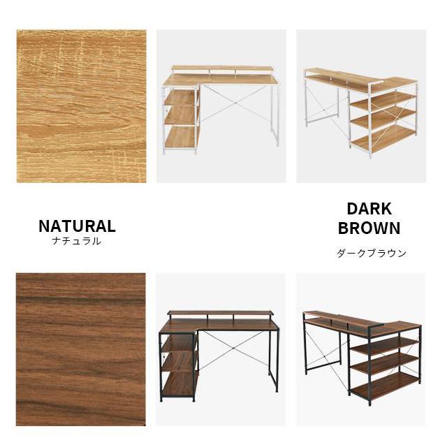 パソコンデスク ワークデスク オフィスデスク L字型 120cm 3段收納棚付 木製 収納付 ミシン台 シェルフ付きデスク デスク付きシェルフ 学習デスク