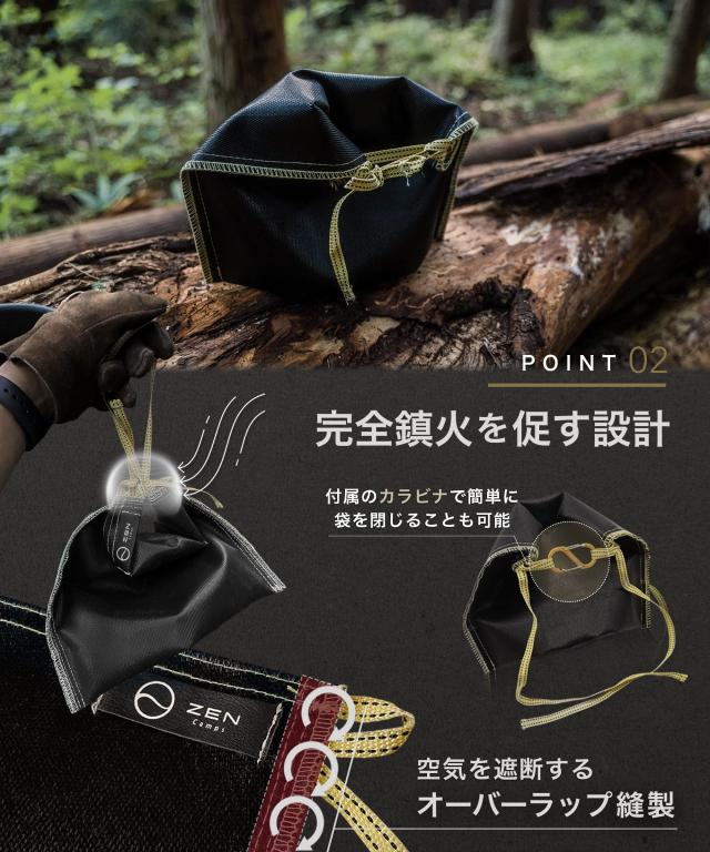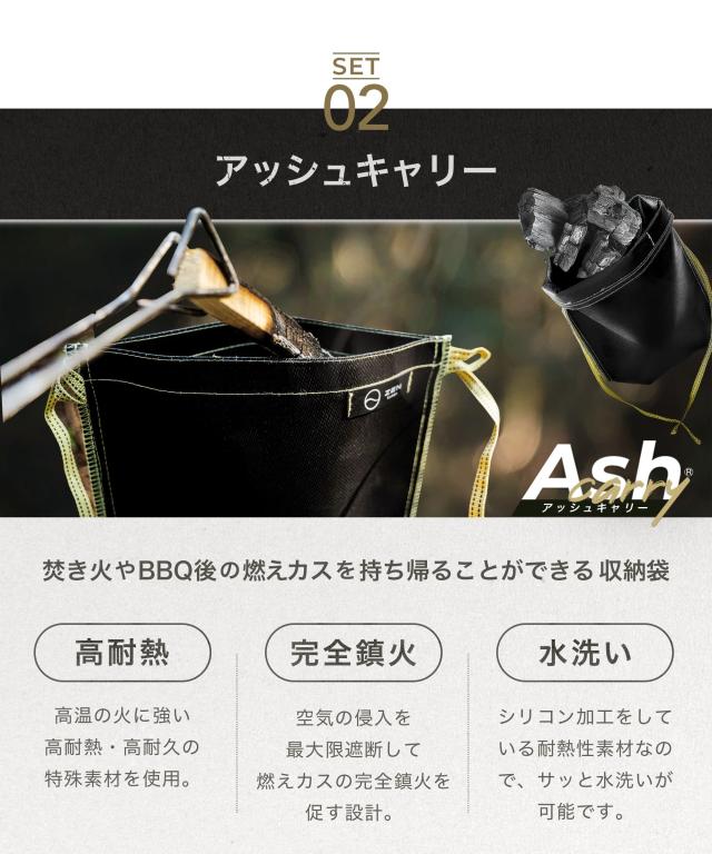 ZEN Camps セット商品 ブラック焚き火シート50cm X 50cm & アッシュキャリーS