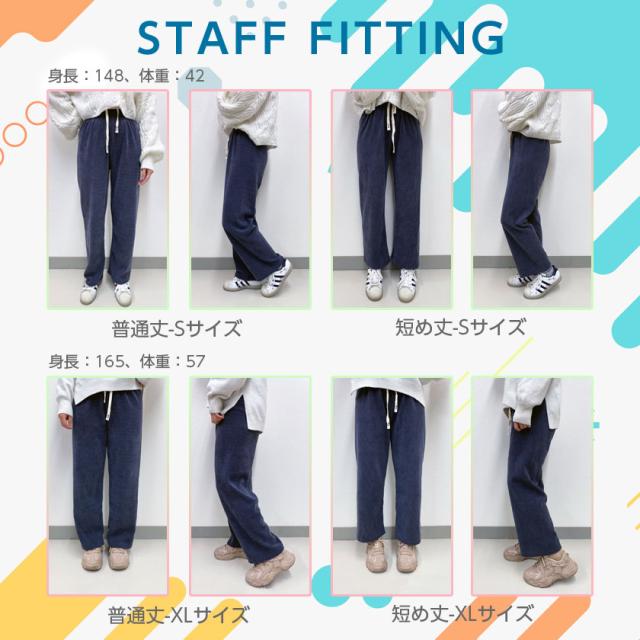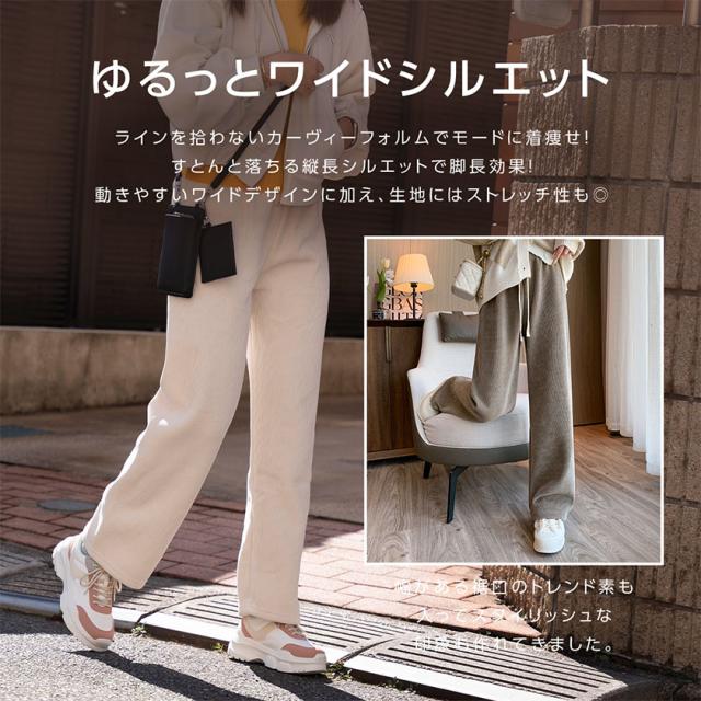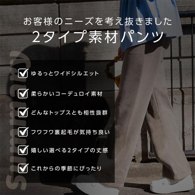 パンツ コーデュロイ レディース 冬 裏起毛 ワイドパンツ イージーパンツ 選べる丈 あったかい 防寒 低身長 高身長 ゆったり