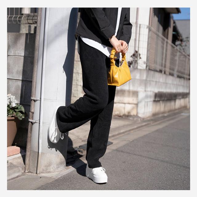・【トップスとも相性抜群】重量感があるので、どんなトップスとも相性抜群!より美しいシルエットが際立ちます。