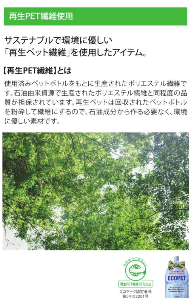 ポリエステル65%(再生ポリエステル)・綿35%(制電生地)