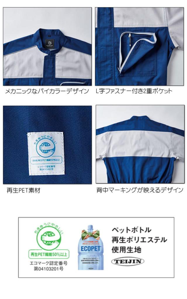 つなぎ ROUNDONI ECO素材長袖ツナギ RO-711 長袖 作業着 通年 丸鬼商店 再生ペット繊維 帯電防止 サイズ4L
