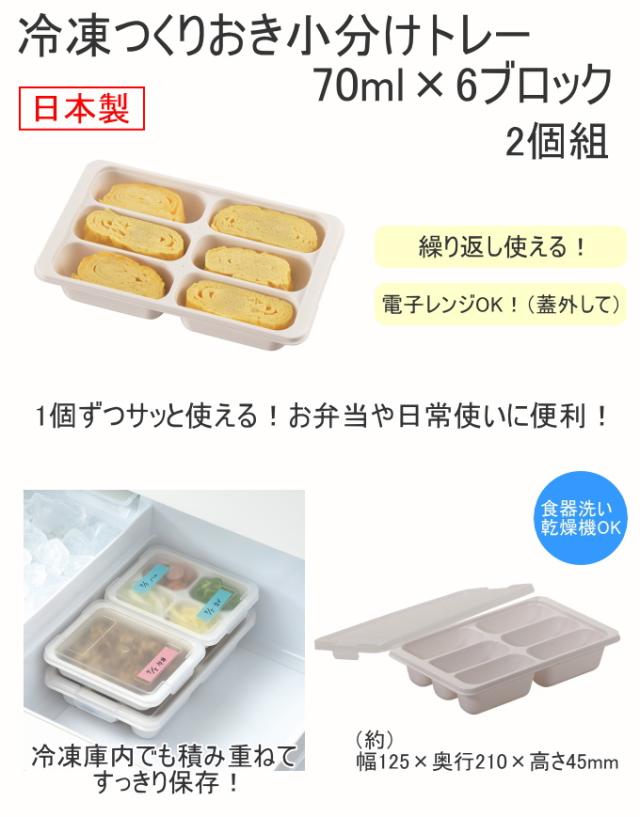冷凍つくりおき小分けトレー 70ml×6ブロック 2個組 HC-130 日本製 ケース 保存容器 お弁当 冷蔵 冷凍 キッチン 食器洗い乾燥機OK