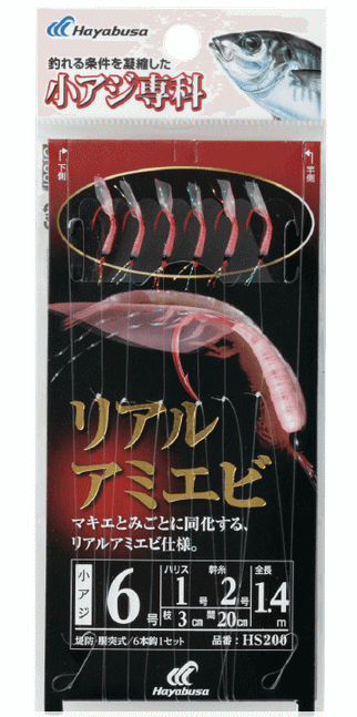 ハヤブサ 小アジ専科 リアルアミエビ HS200 鈎8号 ハリス2号 / サビキ 仕掛け / メール便可 / 釣具