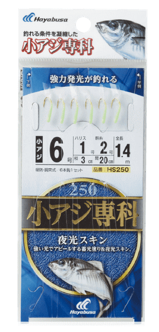 ハヤブサ 小アジ専科 夜光スキン HS250 鈎8号 ハリス2号 / サビキ 仕掛け / メール便可 つり具