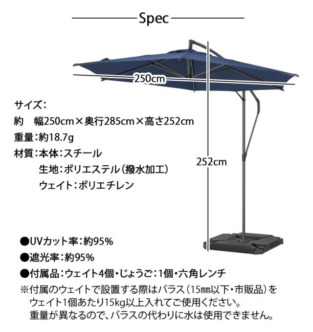 EGプッシュハンギングパラソル 2.5m ネイビー