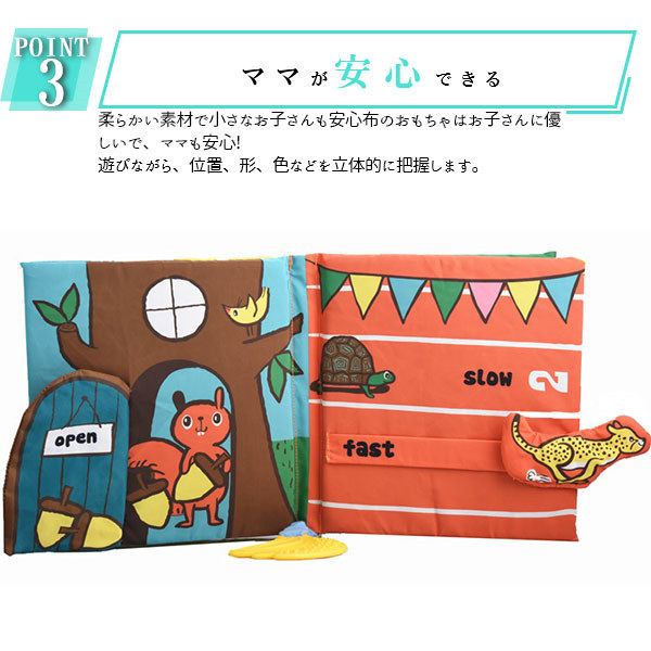 関連キーワード:布絵本 おもちゃ 赤ちゃん 知育玩具 音が出る 布のおもちゃ 0歳 1歳 2歳 ベビー 幼児 キッズ 子供 出産祝い プレゼント歯固め 送料無料 ベビーカー用玩具 ベビーベッドぶら下げ玩具 恐竜 動物 牧場 庭 うさぎ アニマル かわいい かっこいい 海 海の生き物 深海 かくれんぼ ギミック 仕掛け付き絵本