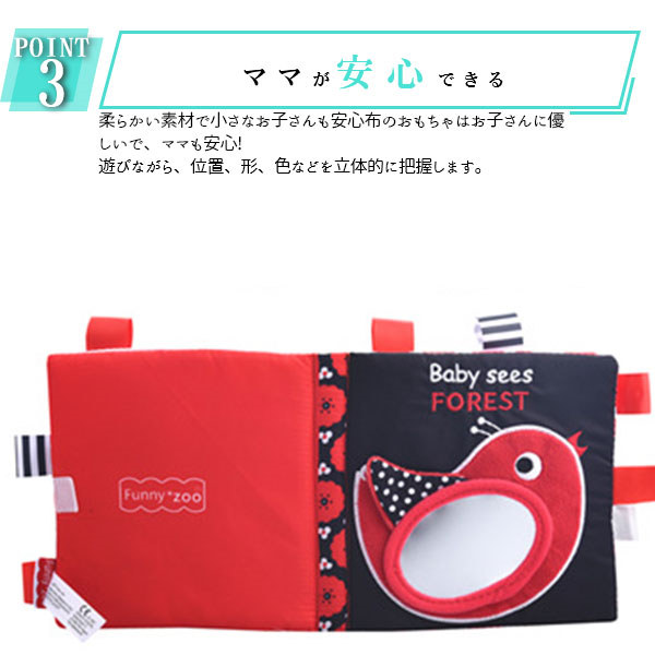 関連キーワード:布絵本 おもちゃ 赤ちゃん 知育玩具 音が出る 布のおもちゃ 0歳 1歳 2歳 ベビー 幼児 キッズ 子供 出産祝い プレゼント歯固め 送料無料 ベビーカー用玩具 ベビーベッドぶら下げ玩具 恐竜 動物 牧場 庭 うさぎ アニマル かわいい かっこいい 海 海の生き物 深海 かくれんぼ ギミック 仕掛け付き絵本