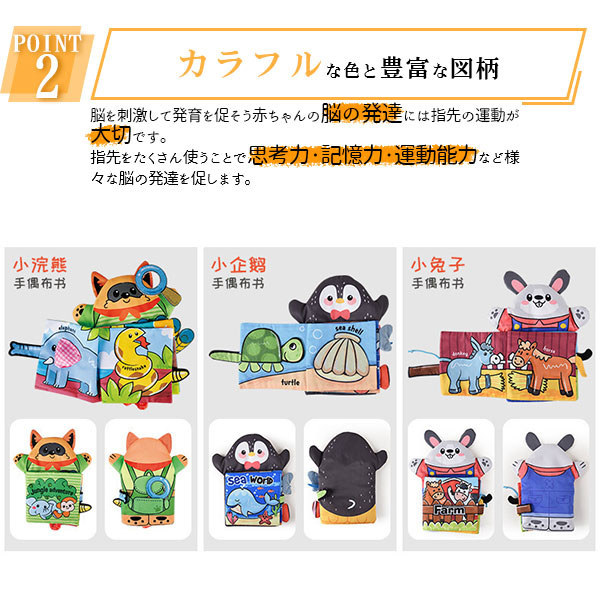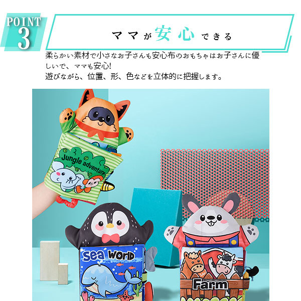関連キーワード:布絵本 おもちゃ 赤ちゃん 知育玩具 音が出る 布のおもちゃ 0歳 1歳 2歳 ベビー 幼児 キッズ 子供 出産祝い プレゼント歯固め 送料無料 ベビーカー用玩具 ベビーベッドぶら下げ玩具 恐竜 動物 牧場 庭 うさぎ アニマル かわいい かっこいい 海 海の生き物 深海 かくれんぼ ギミック 仕掛け付き絵本