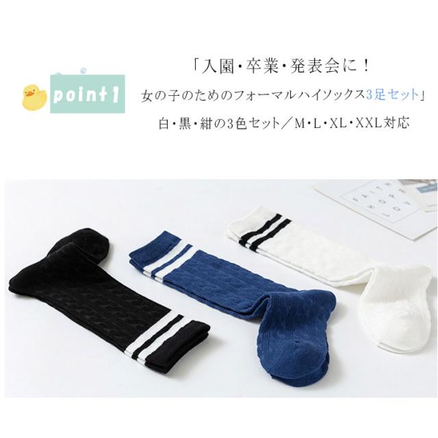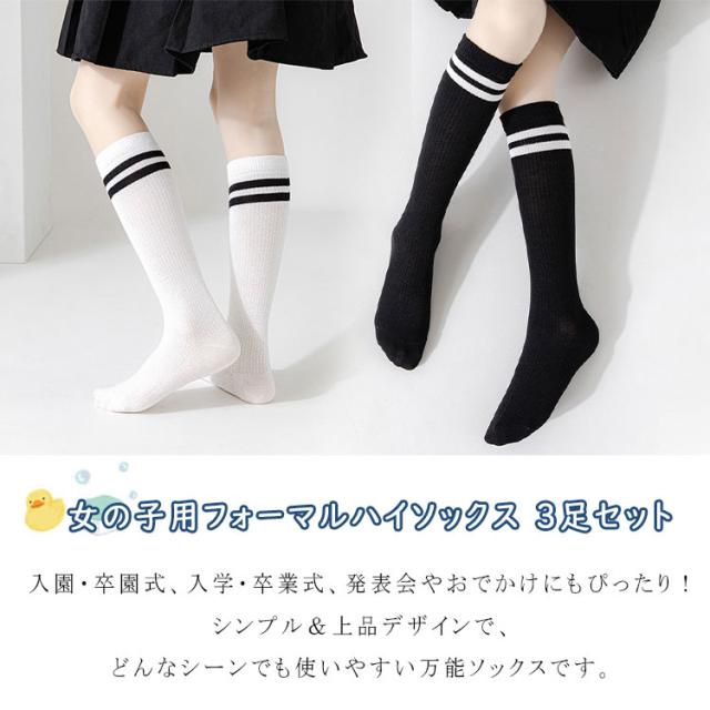女の子 ハイソックス 3足セット キッズ 靴下 フォーマル シンプル 無地 黒 白 紺 入園式 卒園式 入学式 卒業式 発表会 結婚式 春 夏 秋 ガールズ ソックス M L XL 通気性 吸汗 耐久性 おしゃれ 防臭