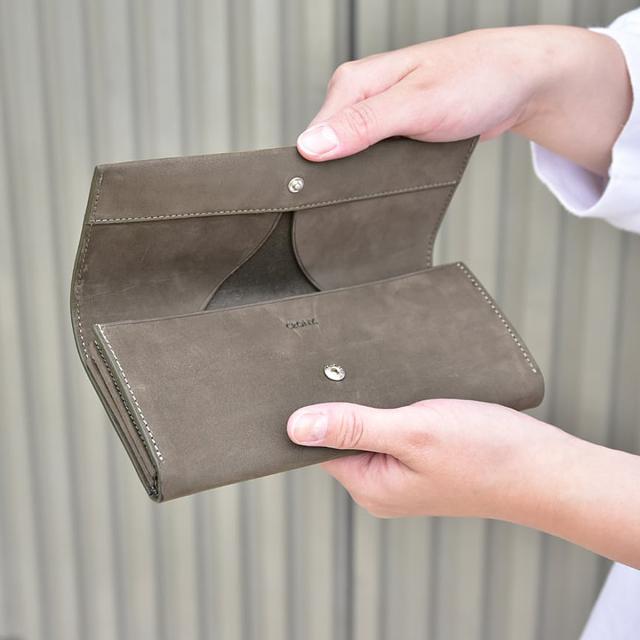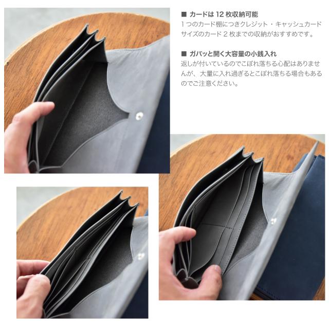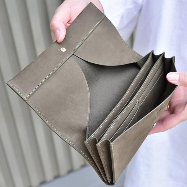 かなりの大容量を誇る長財布です。カード収納枚数も多く、クレジットカードやキャッシュカード、ポイントカードなどを多数収納できます。コインポケットもかなり大きく小銭の取り出しもしやすくなっています。ファスナータイプや一般的な折り長財布と比べると少し厚みがあります。サコッシュやミニショルダーなどのバッグに入れて持ち運ぶと、パンツのポケットに入れるより出し入れがスムーズです。