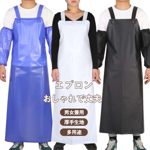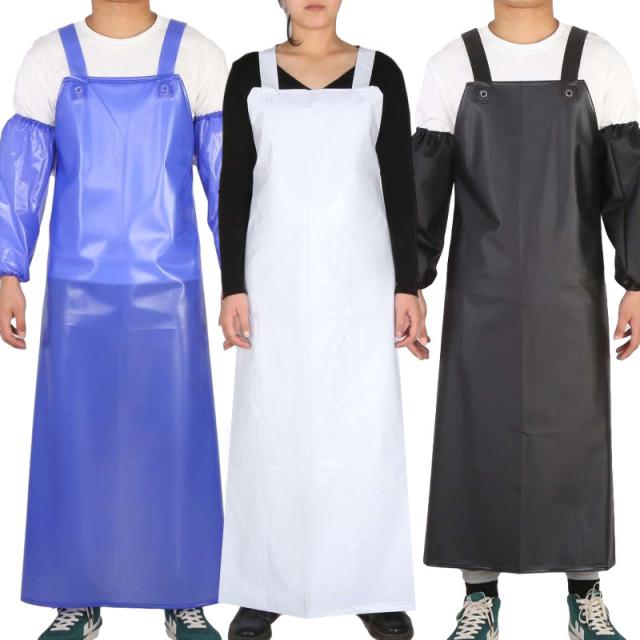 エプロン 袖カバー 前掛け 胸当て 業務用 防水 撥水 耐久性 首掛け ロング 食品加工 給食 精肉 鮮魚 水産加工 酪農 飲食店 板前 ト