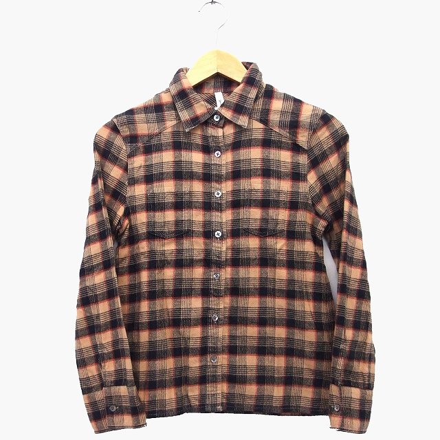 【中古】バナーバレット Banner Barrett シャツ ブラウス チェック 柄 長袖 袖ボタン コットン 綿 38 ブラウン 茶