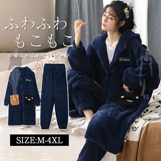 秋冬 長袖 もこもこ ペアパジャマ 上下セット メンズレディース ルームウェア カップル 暖かい 防寒 部屋着 ふわふわ フード付き パジャマ 前開き あったか おしゃれ 大きいサイズ 男女兼用 秋冬 大きいサイズ 20代 30代 40代 50代