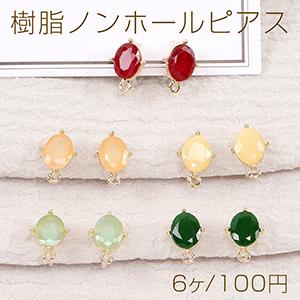 樹脂ノンホールピアス オーバル 樹脂ストーン付き カン付き 9.5×14mm ゴールド(6ヶ)