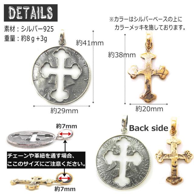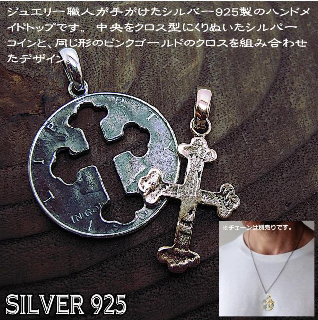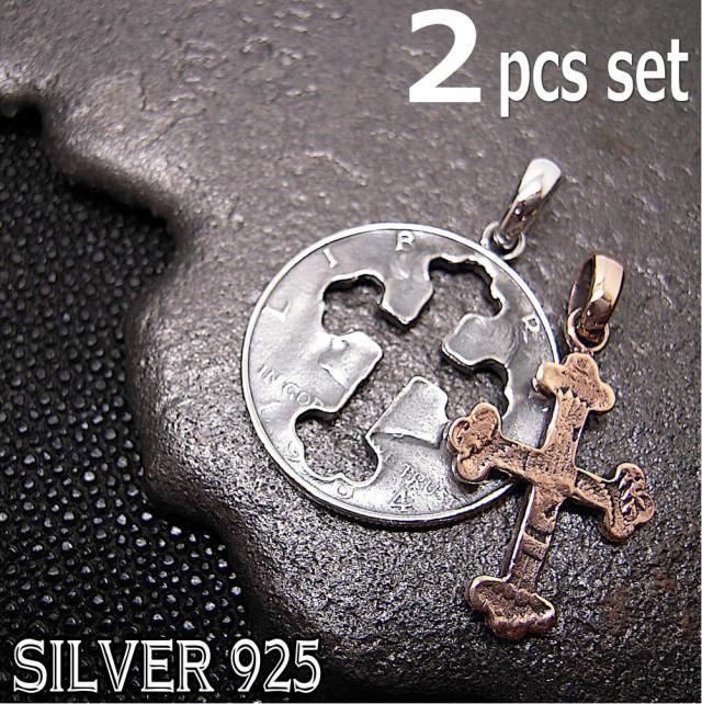 ペア (2個) ペンダント トップ シルバー925 銀 シルバーコインクロス 十字架 ペア アクセサリー プレゼント t021
