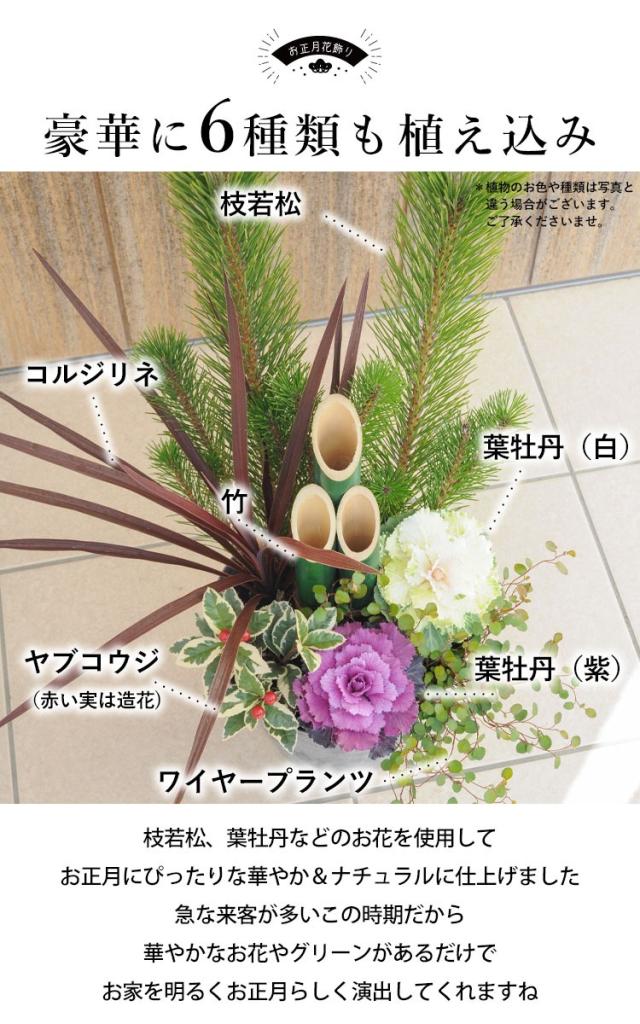 葉牡丹/コルジリネ/竹/斑入りヤブコウジ(実は造花)/ワイヤープランツ/枝若松/