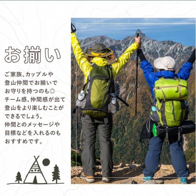 | \ 安全を願う気持ちをカタチにして / 自然の解放感を楽しめる登山は、 若者からご年配の方まで楽しめる 人気 の レジャー です。 しかし、事故や遭難、天候の悪化、さらには野生動物との遭遇など 山には常に危険が潜んでいます。 山登り をする本人も、帰りを待つ人たちも無事を祈らずにはいられません。 大事な家族や友人の安全を願って、 お守りをプレゼントしてみてはいかがでしょうか? \ おすすめポイントは3つ! / 1. 当店オリジナルデザイン 当店専属デザイナーによる完全オリジナル。 そびえたつ山を背景に立つ 登山家 のシルエットは臨場感たっぷり! 【 登山安全願い札 】の為だけにデザインされました。 「 Enjoy Climbing safely 」のメッセージが 登山者を元気づけ、前向きな気持ちで送り出してくれることでしょう。 仲間内でも注目されること間違いなしの おしゃれ な お守り木札 です。 2. メッセージ彫刻 木札の裏面にはお好きなメッセージを彫刻することが可能です。 一行8文字×3行までならどんなメッセージでもOK。 彫刻なのでずっと消えることなく残しておくことができます。 贈る方のことを想い、幸せを願う気持ちを込めたメッセージは どんなお守りにも勝る御利益を授けてくれることでしょう。 お守りは1年で、または願いがかなったら返納するとされていますが、 思いのこもった願い札はずっと持っていても大丈夫。 見るたび、手にするたび、何度でもあなたのことを思い出し、 いつでも近くに感じてもらうことができます。 3. 熊よけ鈴 登山中の野生動物との遭遇は恐ろしいもの。 クマ による被害も少なくありません。 初心者 が登る山でも出没する可能性があるので、 対策はしっかりするべきでしょう。 熊は本来臆病な性格で、人間との遭遇を避けて暮らしています。 そのため、人の気配を察知するとその場から離れていきます。 「音を鳴らす」という方法も、人の気配を知らせるのに最適な方法。 そのため、 熊よけ 対策 にぴったりなアイテムが「 熊鈴 」です。 3つの鈴が居場所を知らせ、 歩きながら熊を警戒することが出来ます。 音量を抑えたい時は、鈴の数を減らして調節して、 必要に応じてお使いいただけます。 クリップ付きなのでベルトループやリュックにつけて お守りと一緒に持ち歩けば、心強い 護身用 装備 となってくれるでしょう。 【 収納袋付き 】 当店オリジナル巾着袋付き。 電車での移動中など、鈴の音を抑えたい時は袋に収納して持ち運びいただけます。 ≪ こんなシーンにおすすめ ≫ ・ 登山趣味 山好き な方への 健康祈願 安全祈願 に ・ 登山 ハイキング トレッキング ロッククライミング を楽しむ方へ ・ 山登り が趣味の お父さん お母さん への プレゼントに ・ 60代 70代 で 登山を楽しむ方 への 敬老の日 ギフト に ・ 山男 山ガール な 男性 女性 に ・ 富士山 登頂 の無事を祈って ・ 登山部 山岳部 の 部員 チーム で お揃い に |