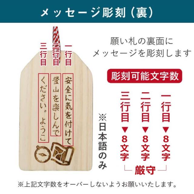 \ 安全を願う気持ちをカタチにして /安心・安全に登山を楽しんで欲しい気持ちを、ぬくもりある木札に込めて贈りましょう。 裏面にメッセージが彫刻できます。