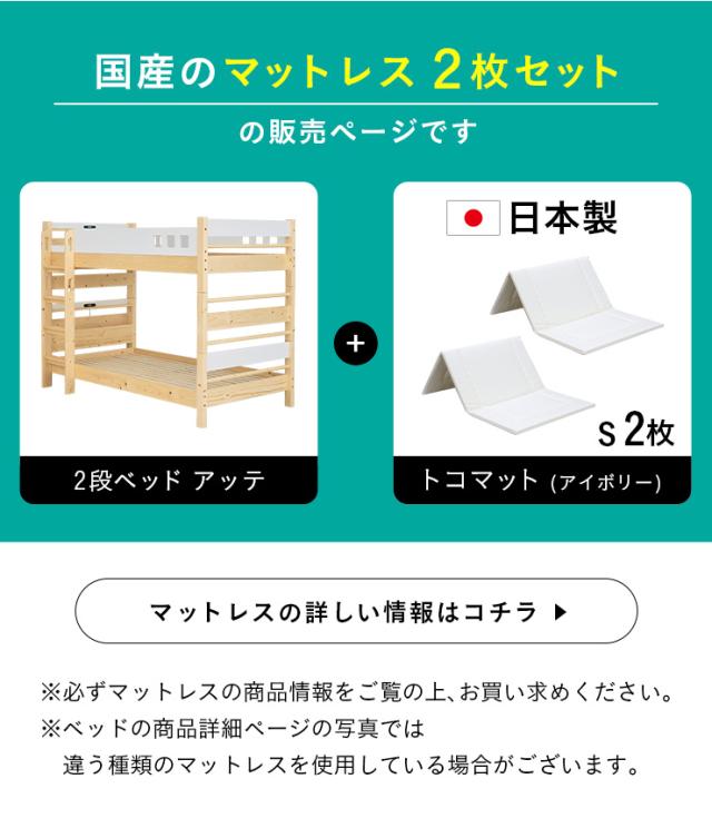 【日本製マットレス付き】宮付き 二段ベッド 2段ベッド atte2(アッテ2) 3色対応 宮棚付き 二段ベット 2段ベット マットレスセット 耐震仕様 子供用ベッド ベッド 木製 おしゃれ ライト付き コンセント付き