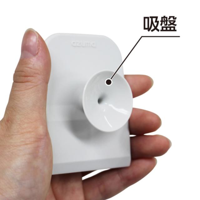 洗面台に吸盤でピタッと貼り付くので、場所を選ばず収納できます。吸盤で貼り付けることにより、ブラシ・スクイージーが洗面台に触れず、衛生的に収納できます。