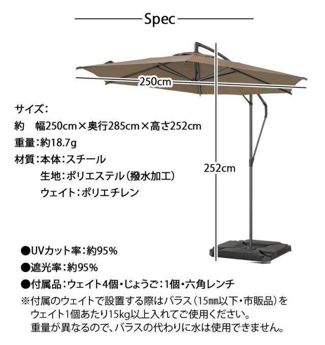 ※お客様にてプラスドライバーをご用意ください。また、付属のウェイトで設置する際はバラス(15mm以下サイズ・別売り・市販品)をウェイト1個あたり15kg以上入れてご使用ください。