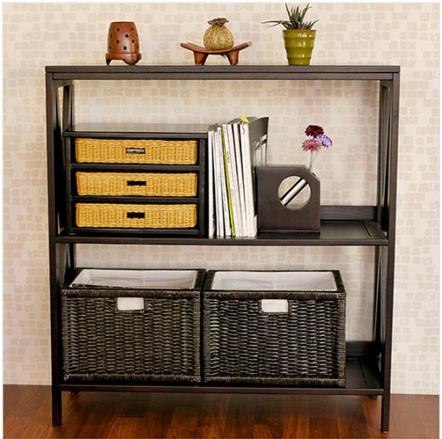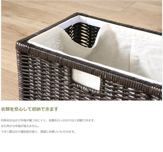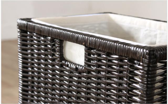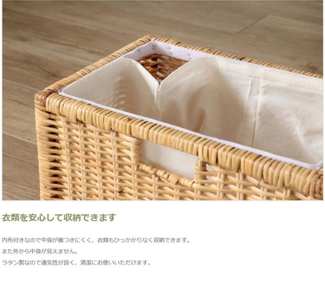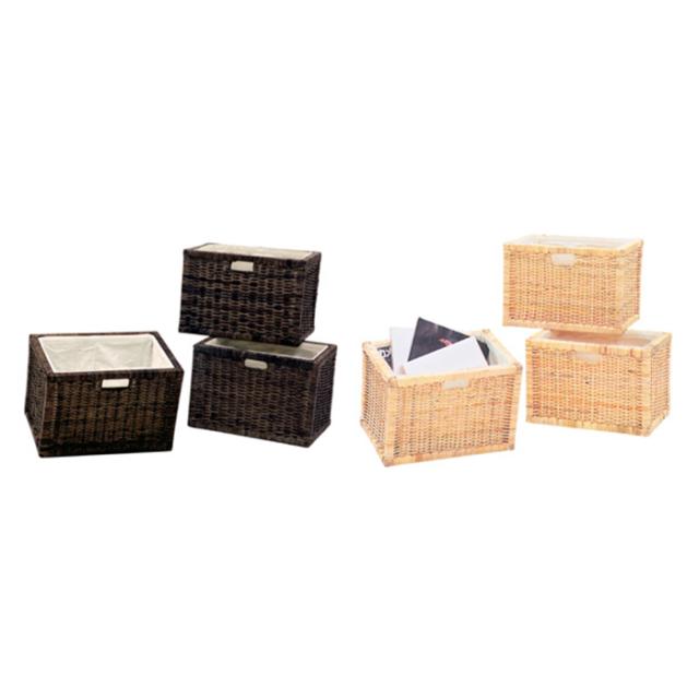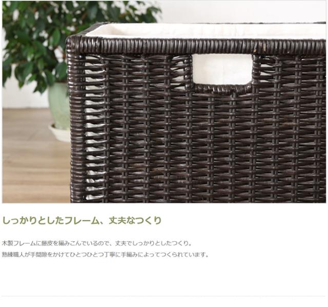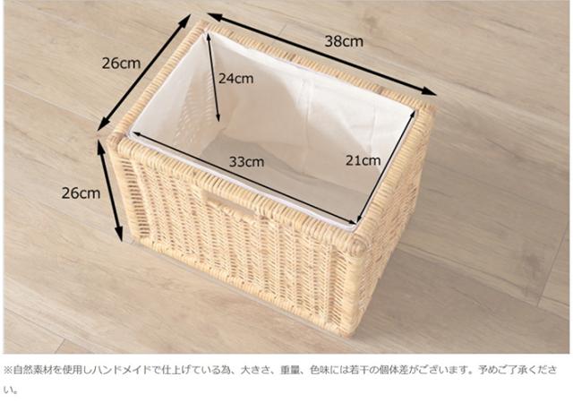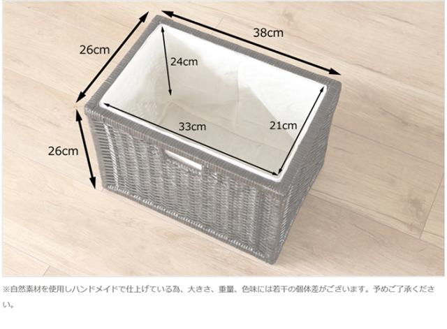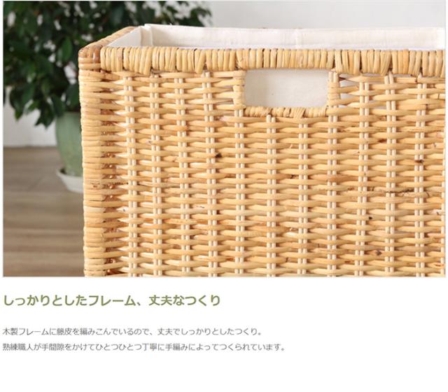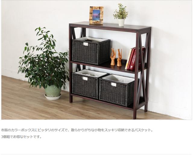 ラタン 収納バスケット 3個組 おしゃれ バスケット 奥行26 籐 カラーボックス 木製フレーム 天然木 内布付 取っ手付き リビング 脱衣所 アジアン風 おもちゃ箱
