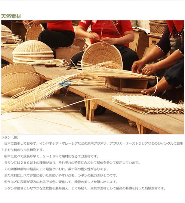 ラタン(籐)、天然木、綿、ラッカー塗装